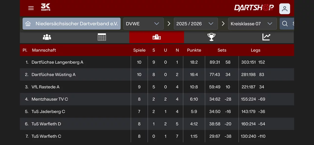 Die erste Saison 2025/2026 ist fast zuende gespielt, und die Dartfüchse grüßen beide von der Tabellenspitze und können die Meisterfeier planen